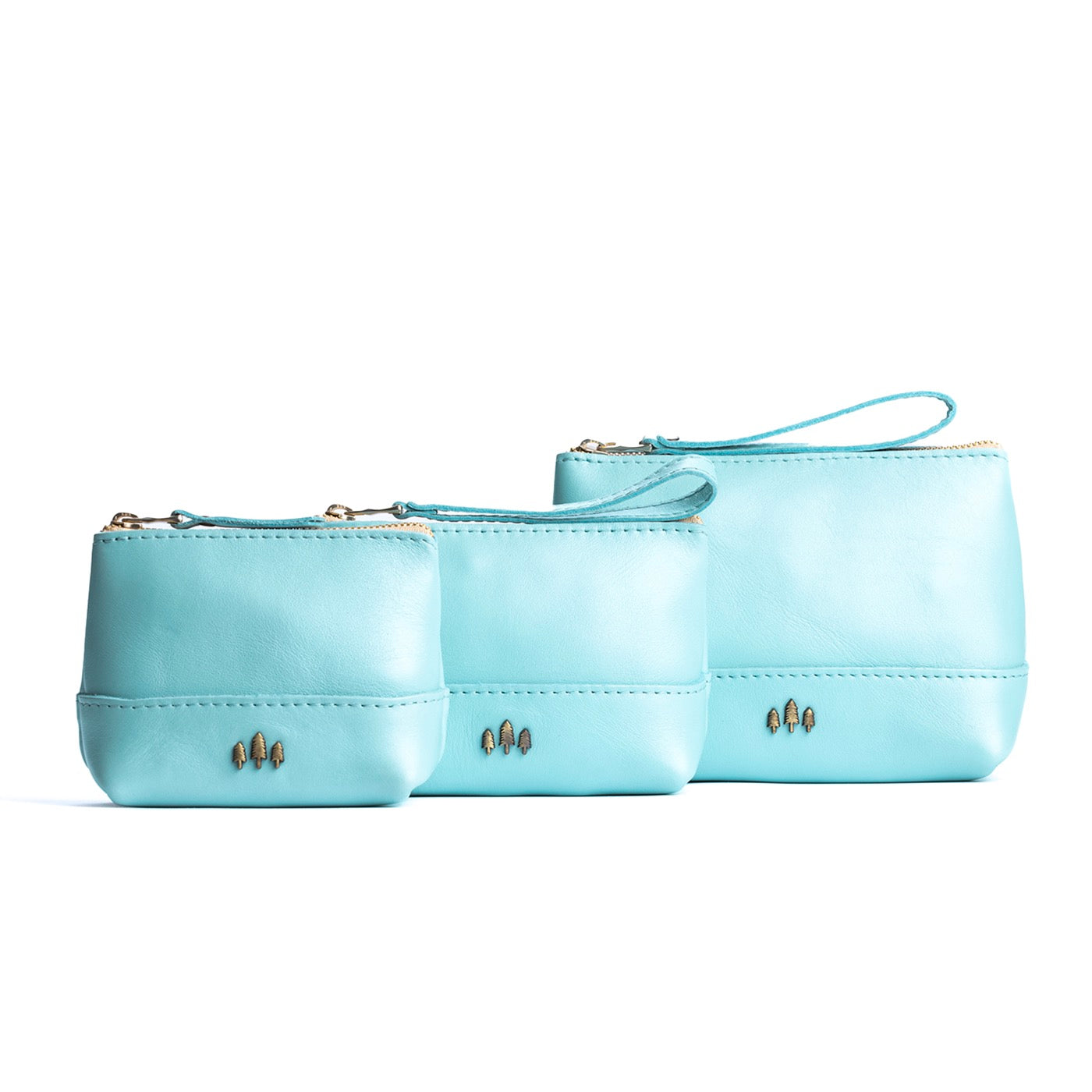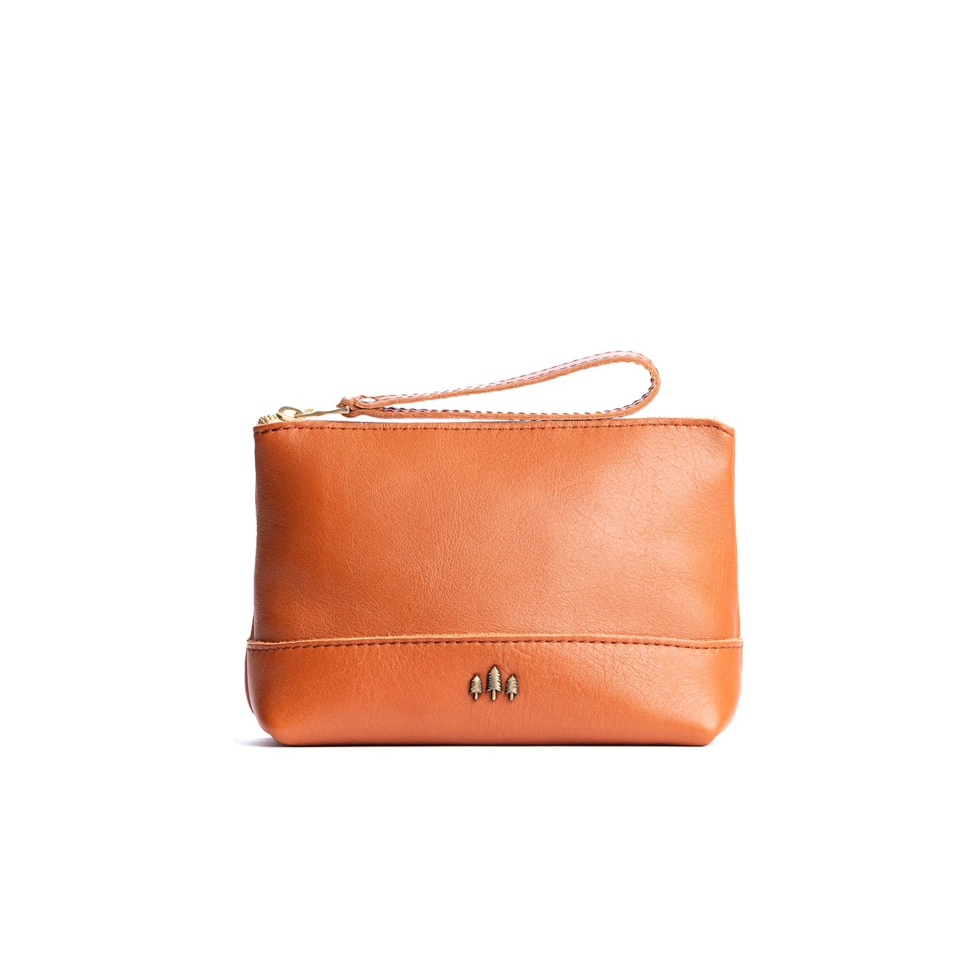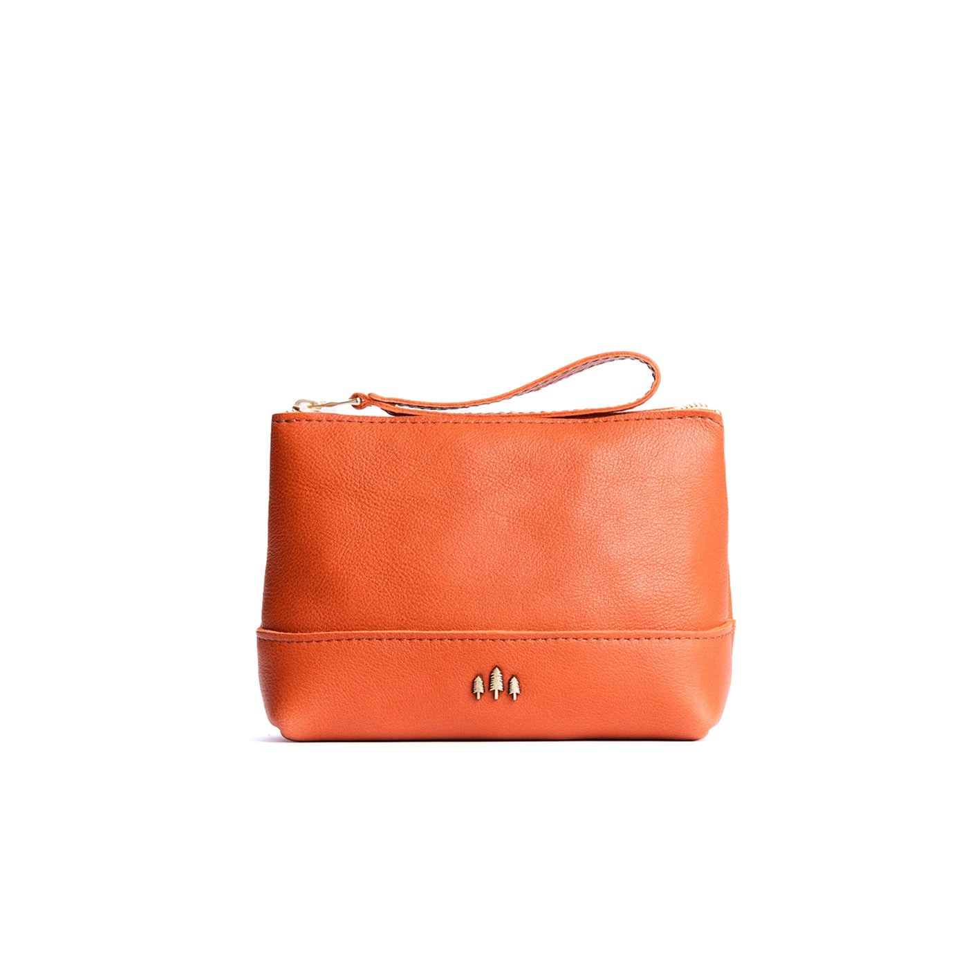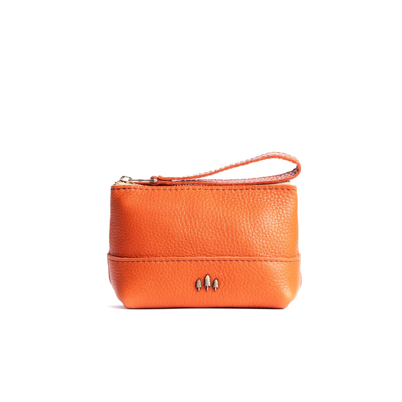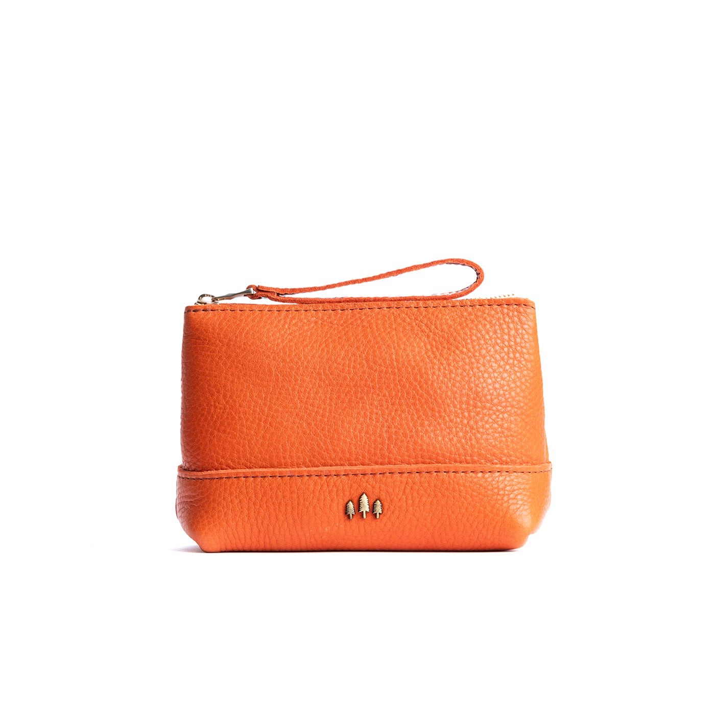 • Small size features a leather zipper pull while the Medium and Large boast a wrist strap for an on-the-go conversion to wristlet