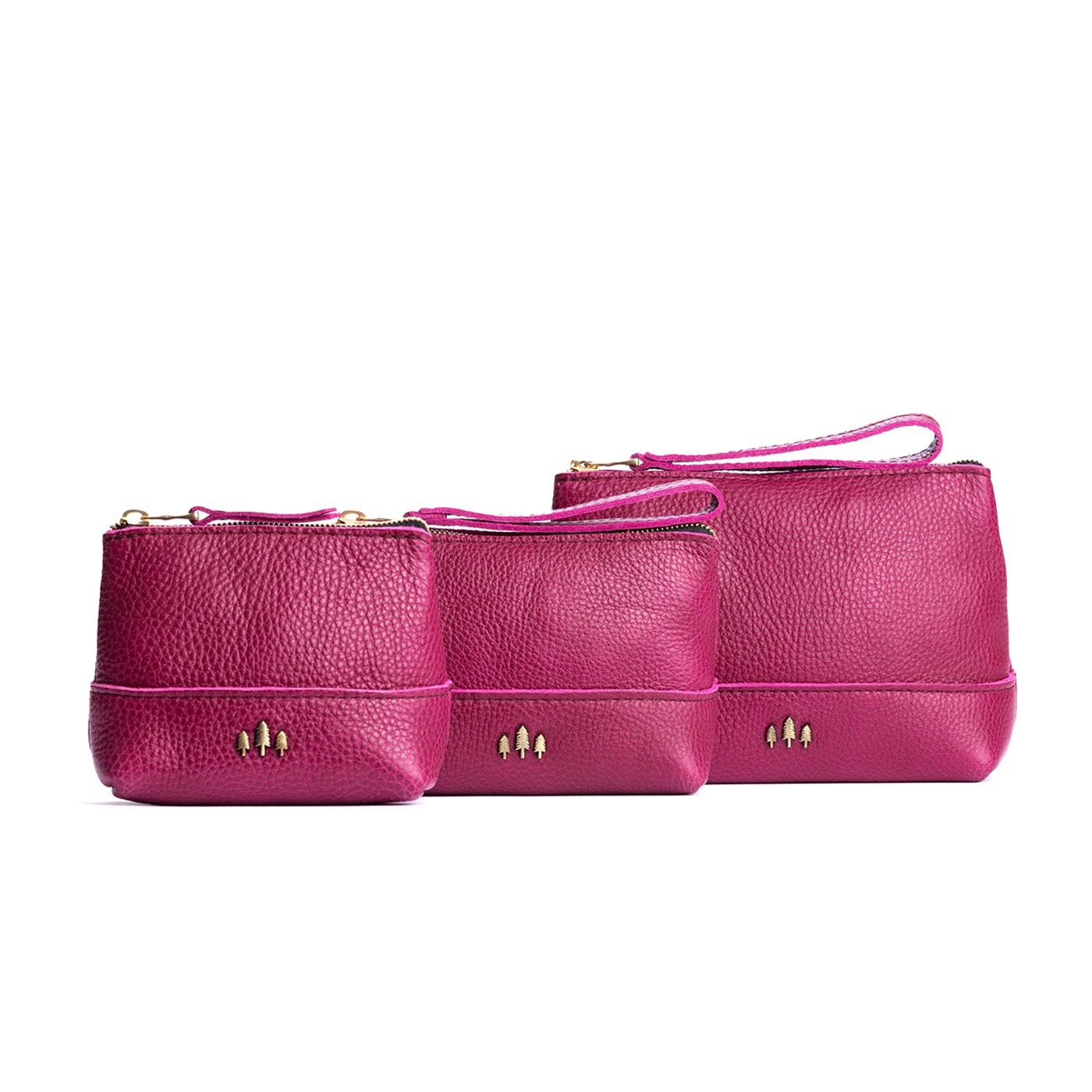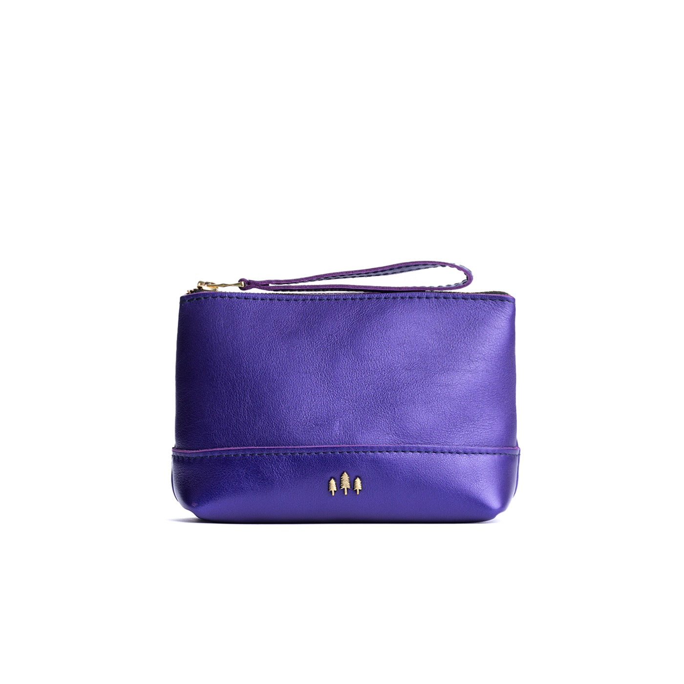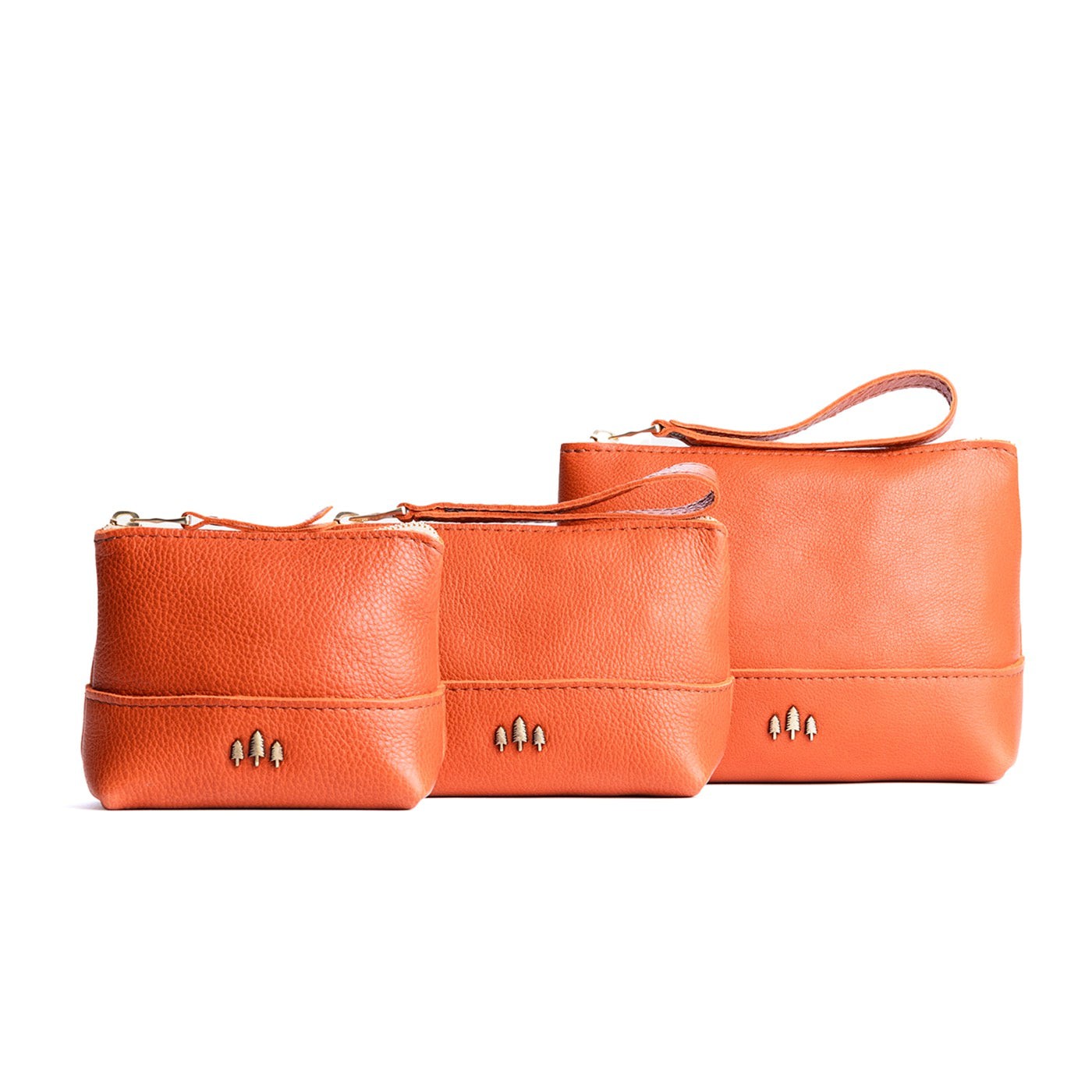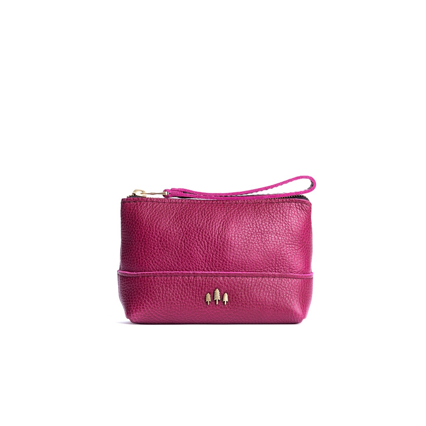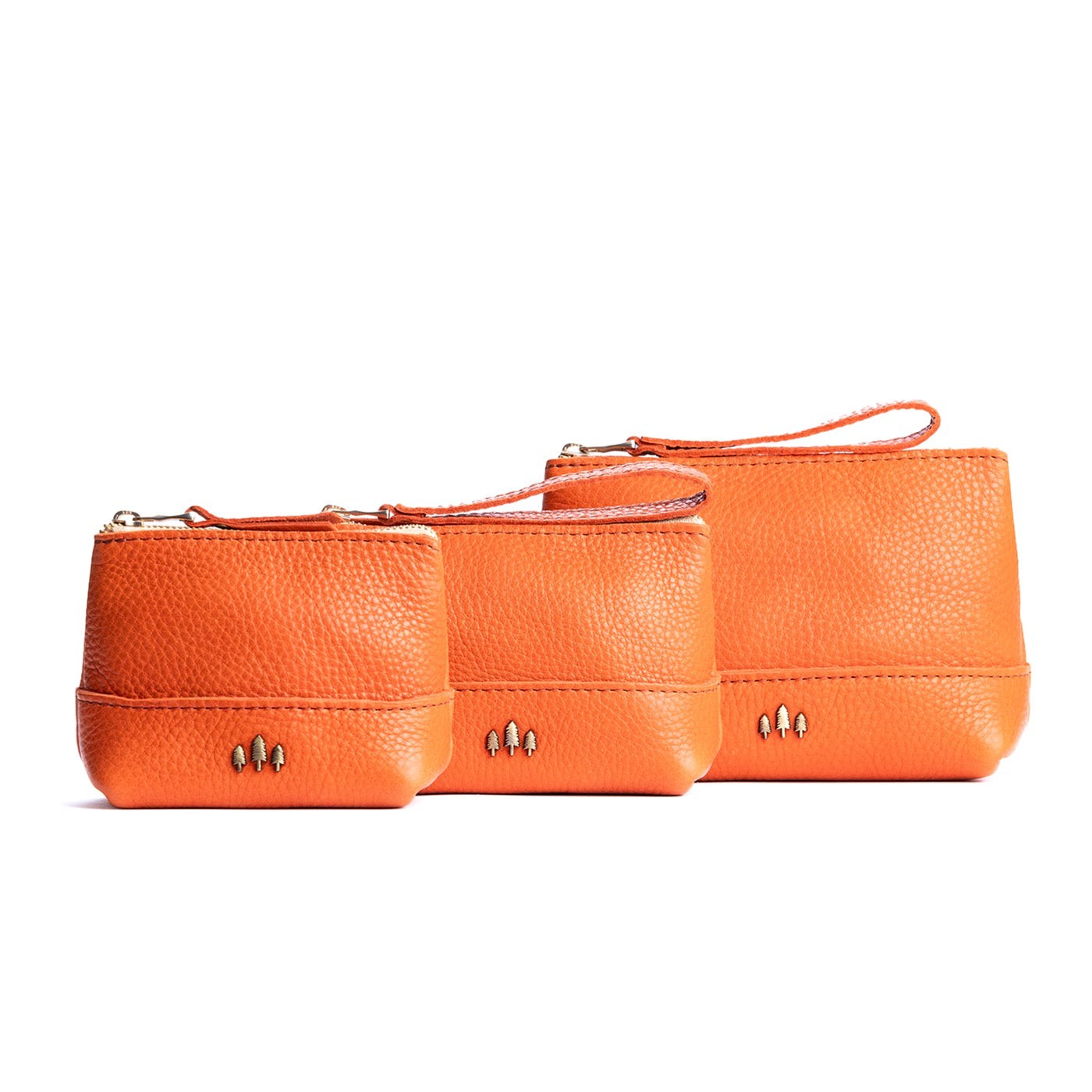 • Small size features a leather zipper pull while the Medium and Large boast a wrist strap for an on-the-go conversion to wristlet