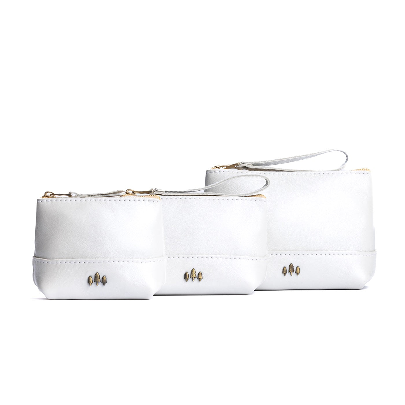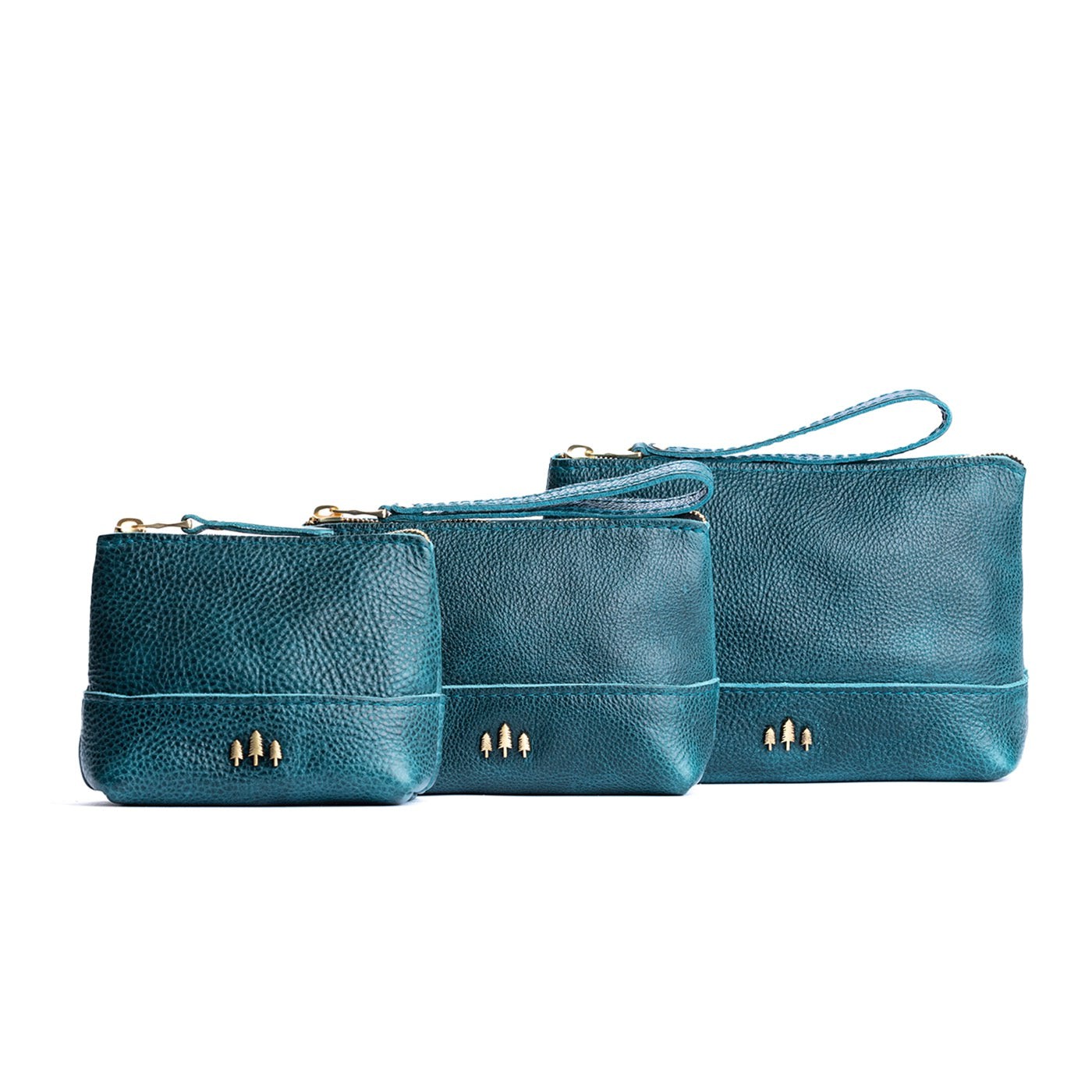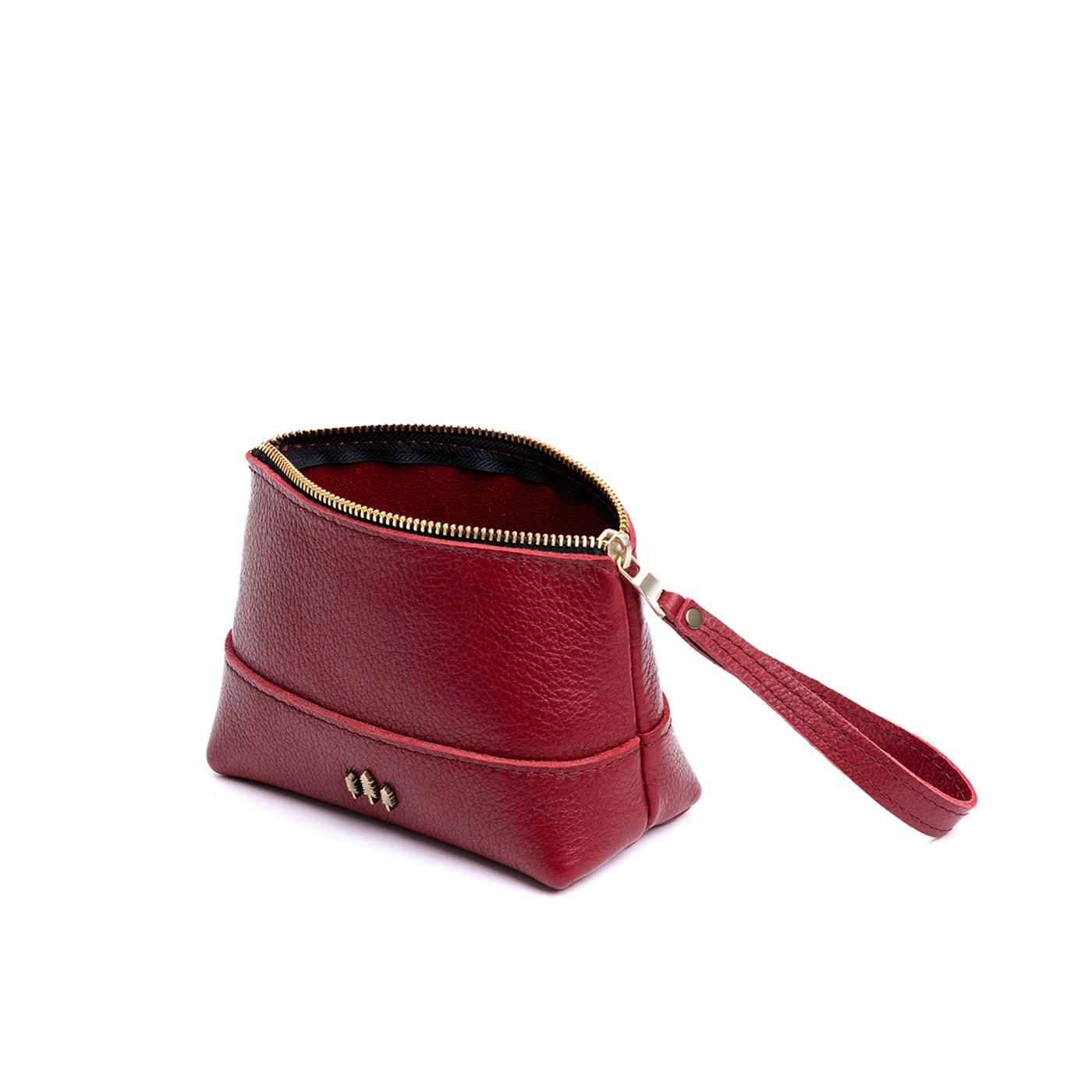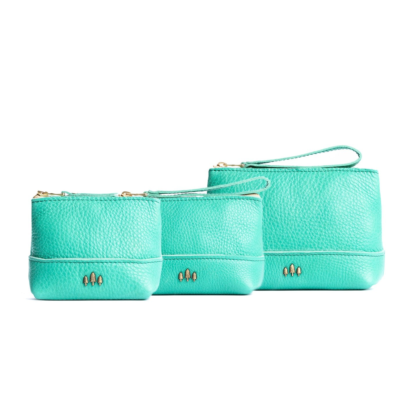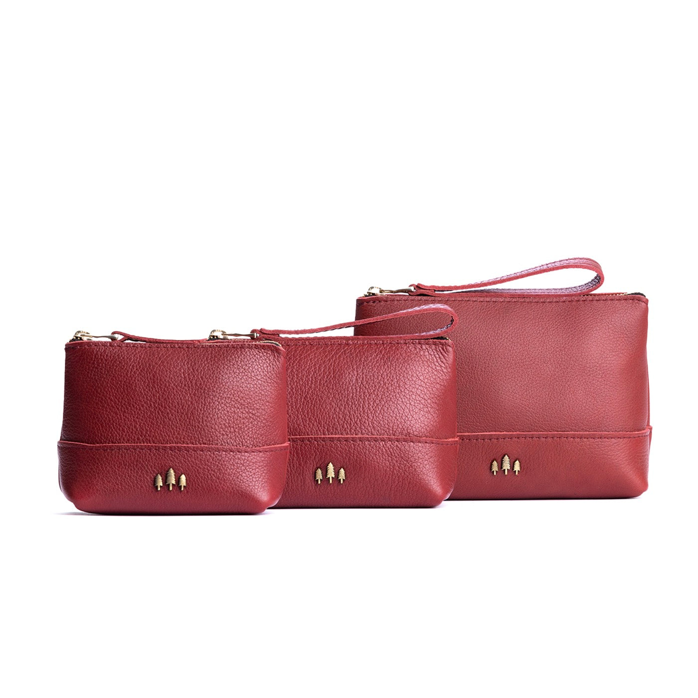 • Small size features a leather zipper pull while the Medium and Large boast a wrist strap for an on-the-go conversion to wristlet