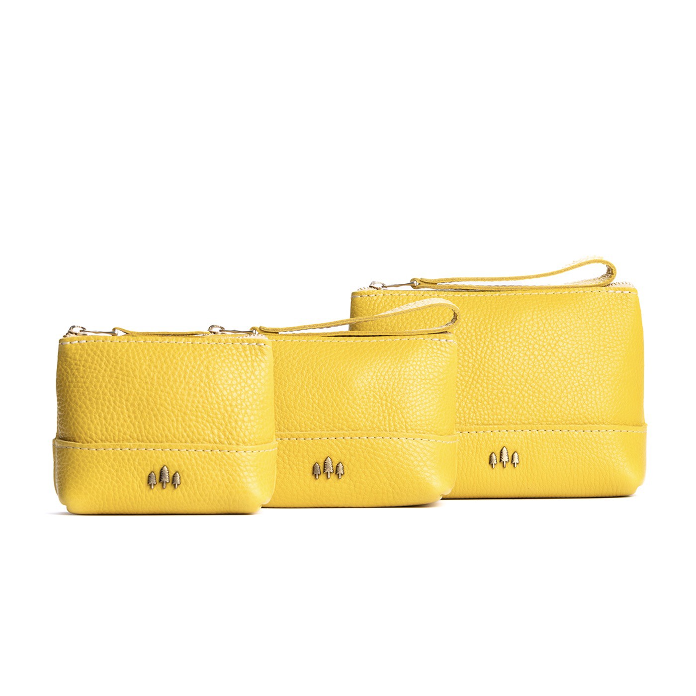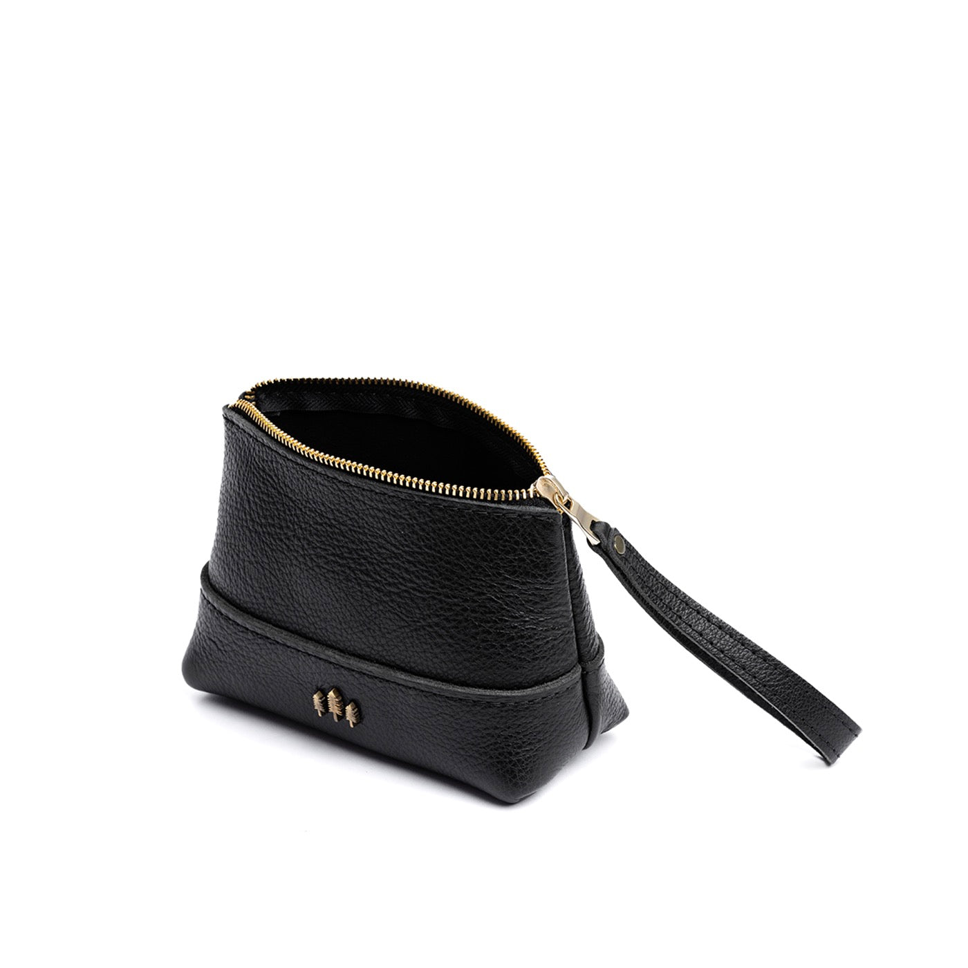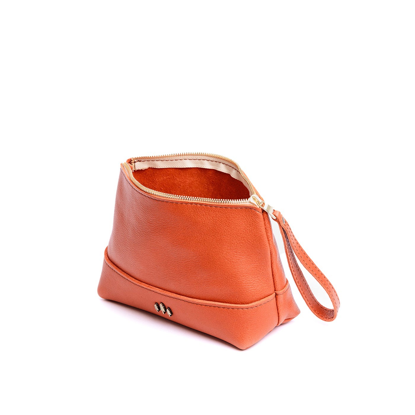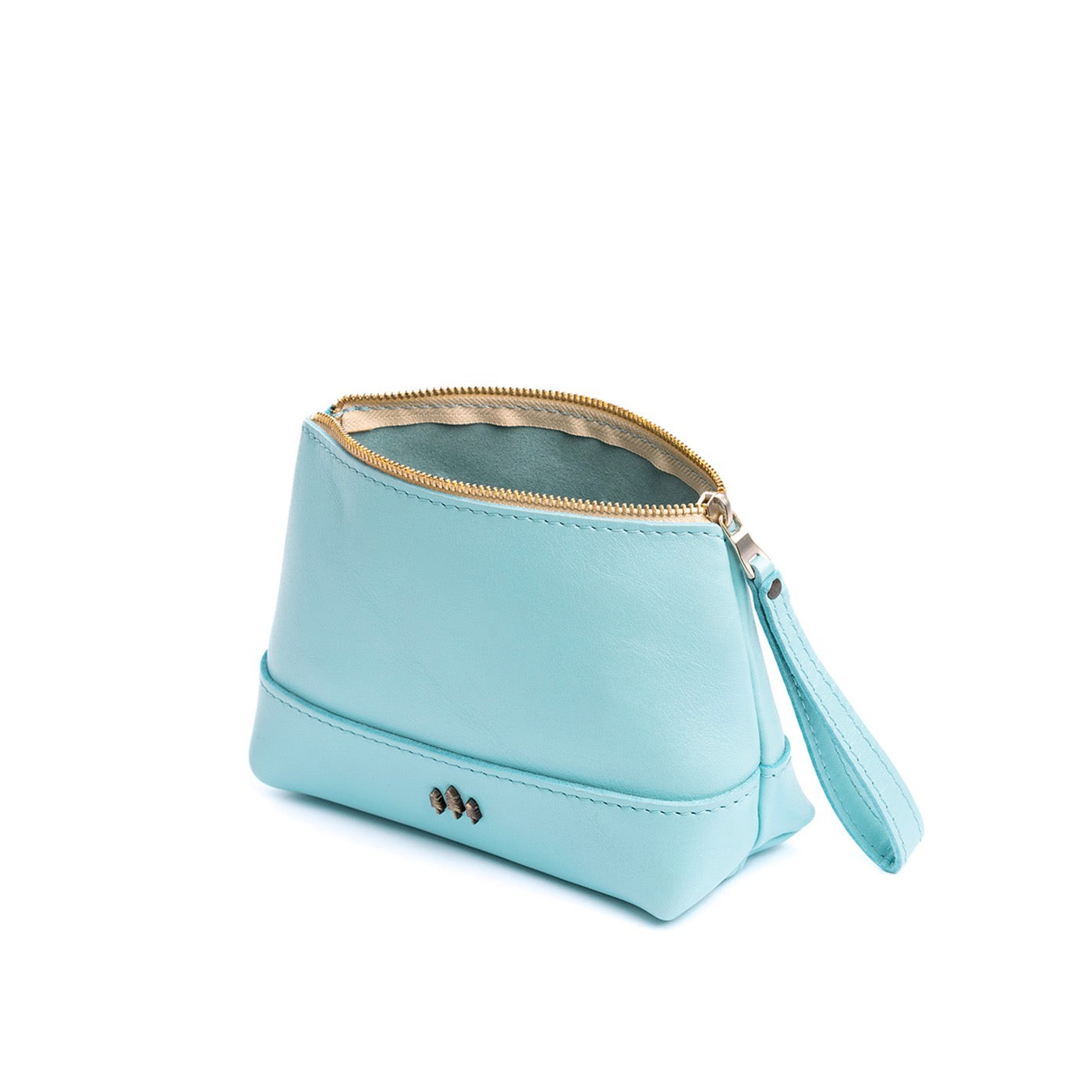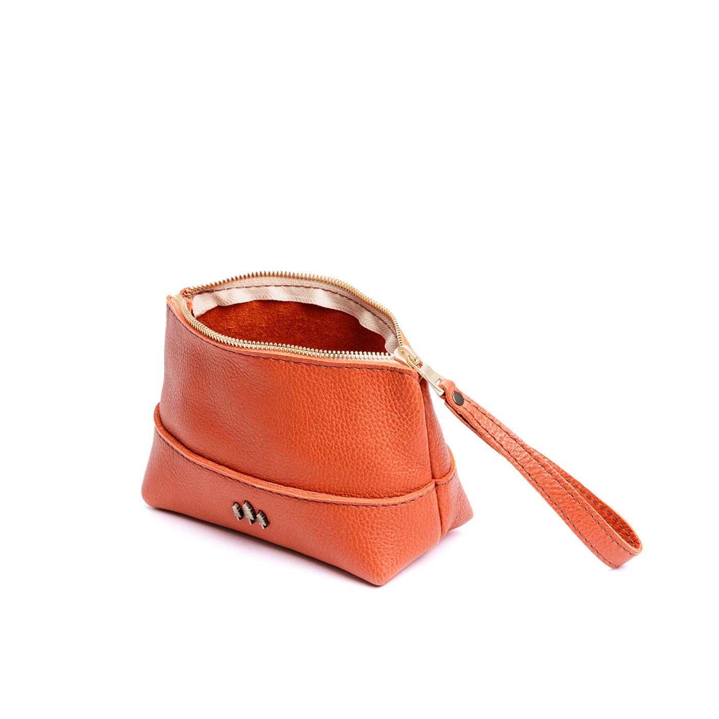 • Small size features a leather zipper pull while the Medium and Large boast a wrist strap for an on-the-go conversion to wristlet