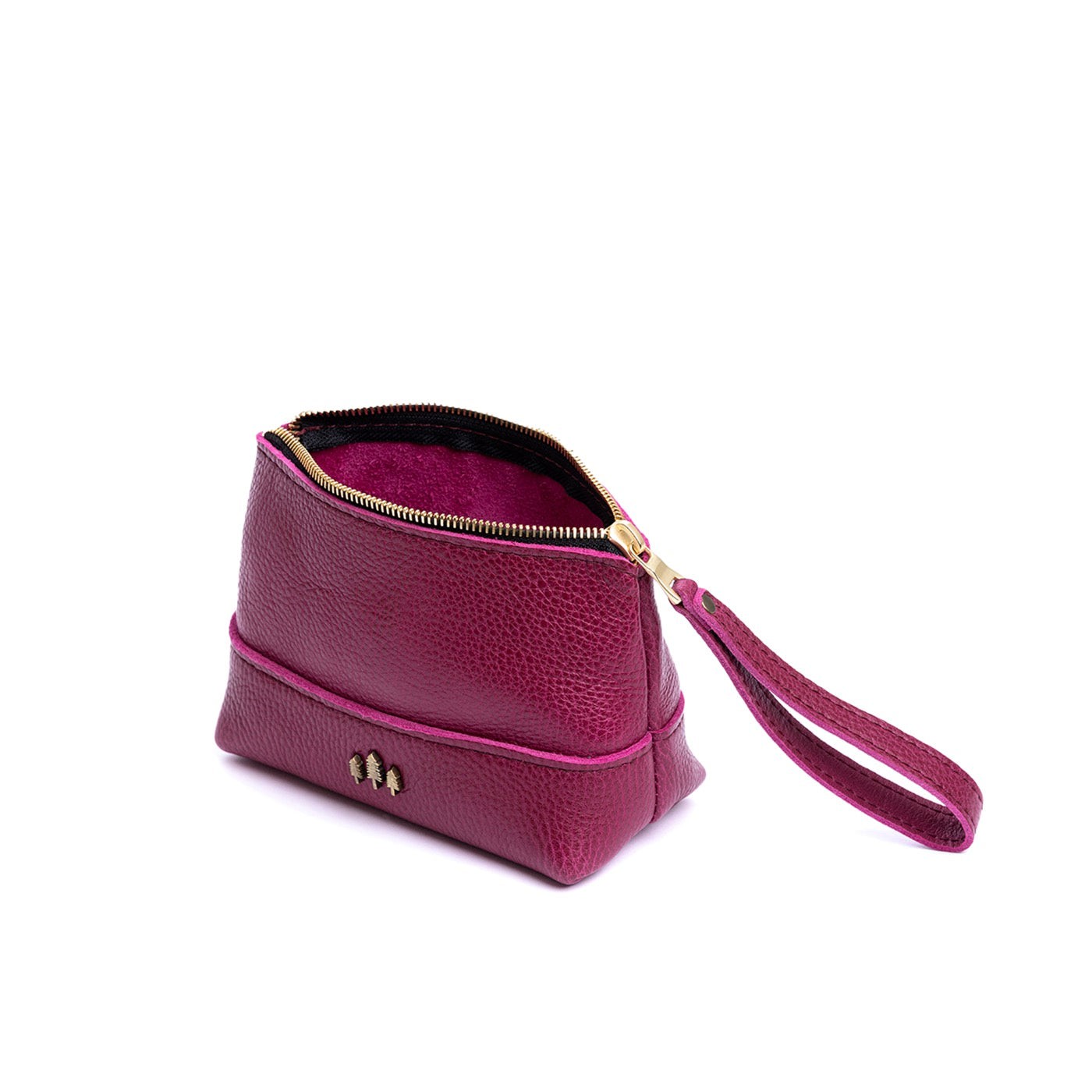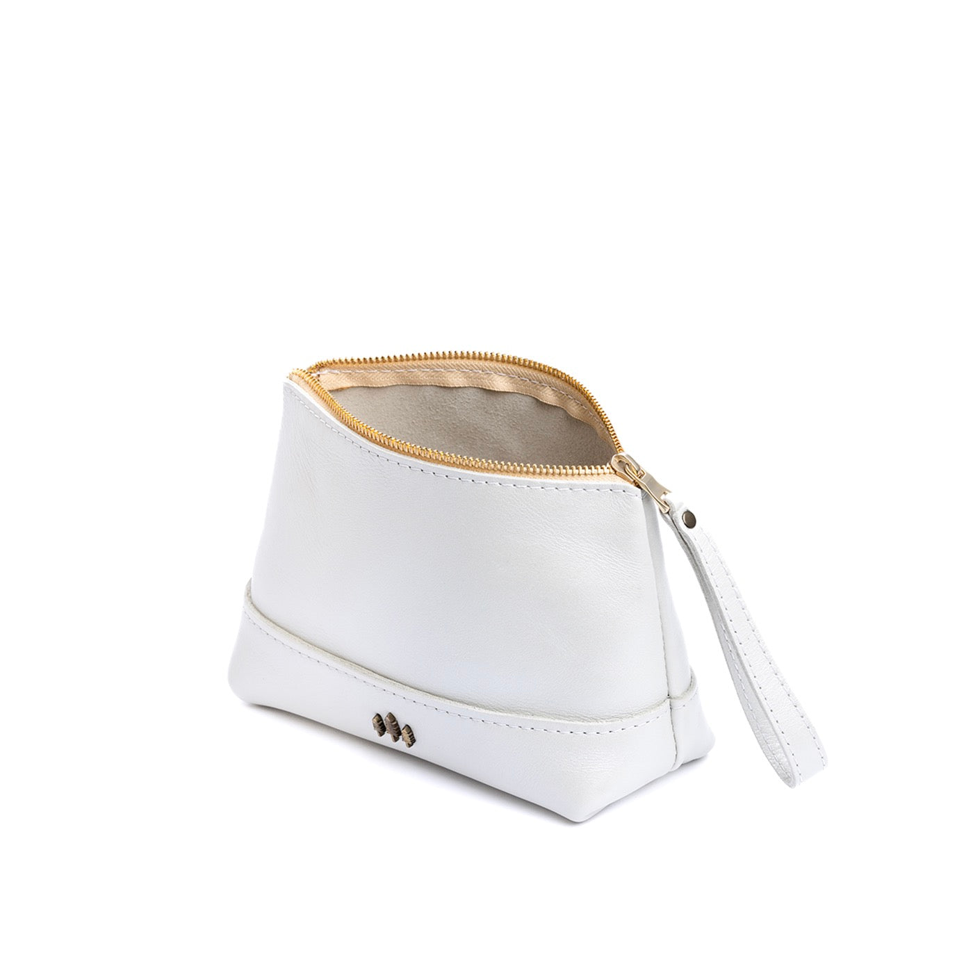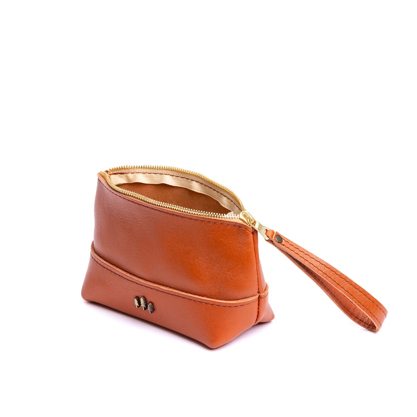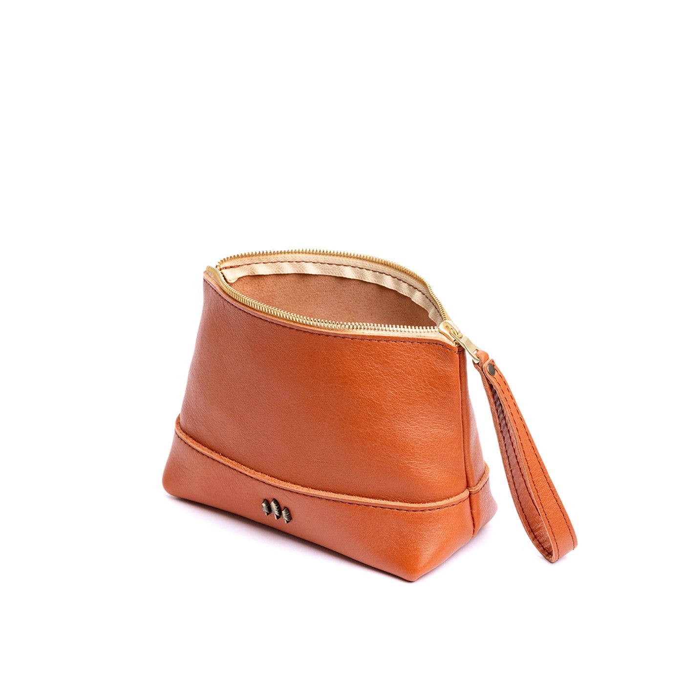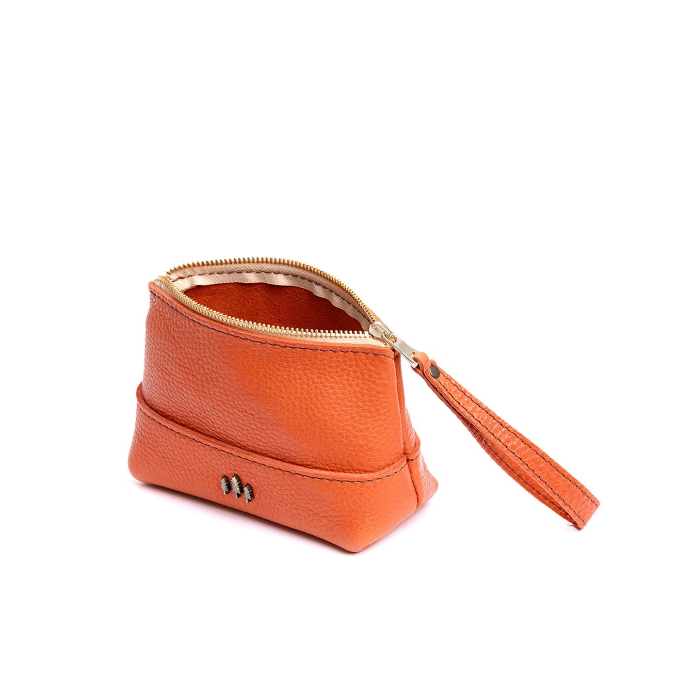 • Small size features a leather zipper pull while the Medium and Large boast a wrist strap for an on-the-go conversion to wristlet